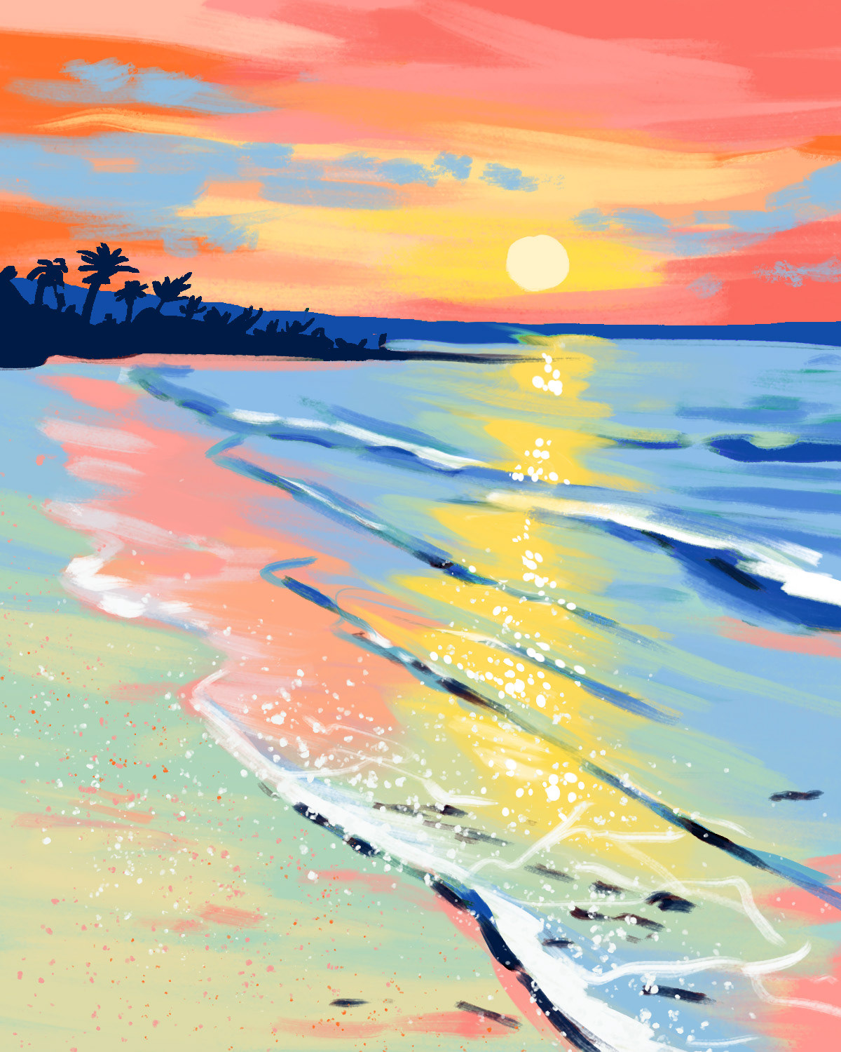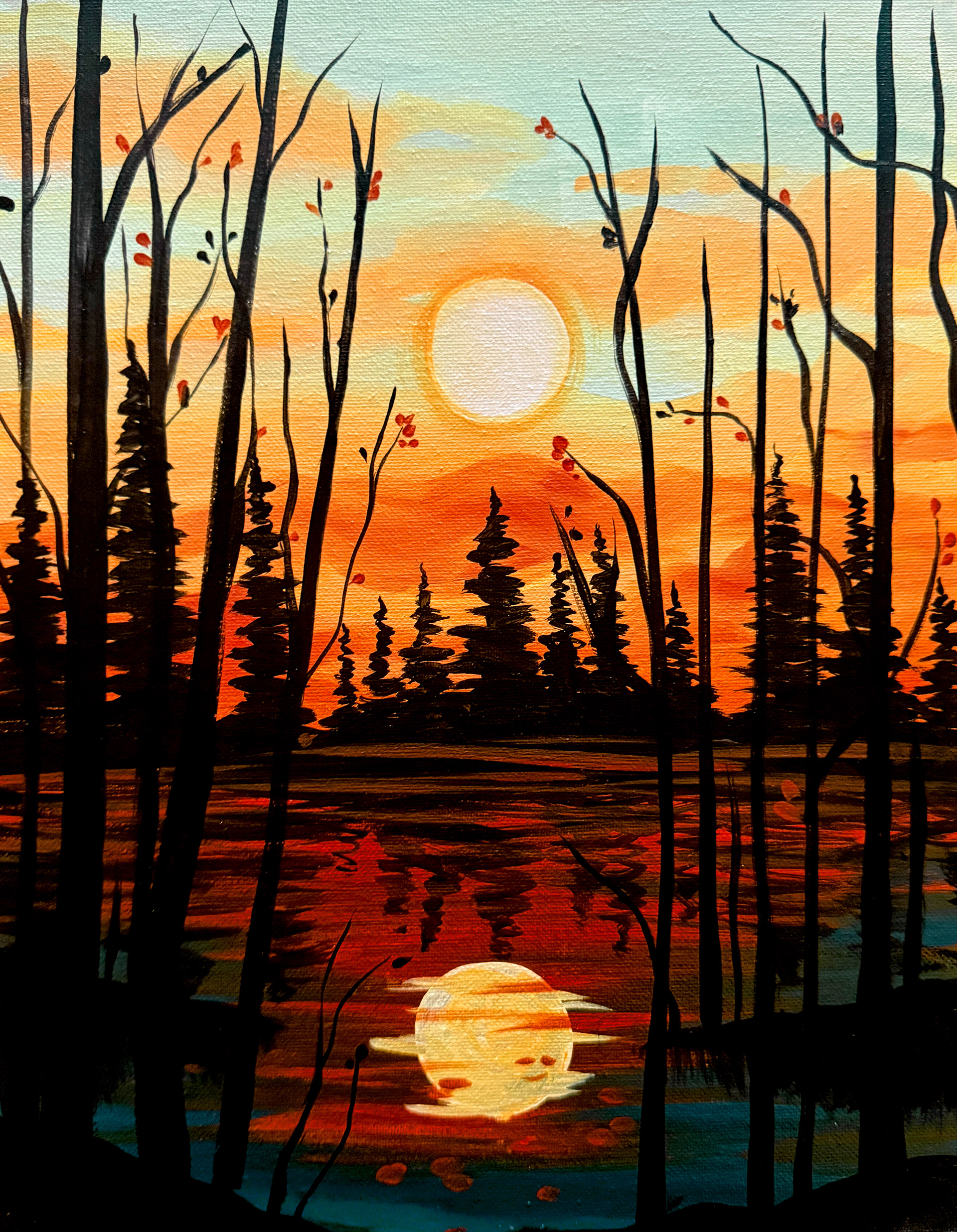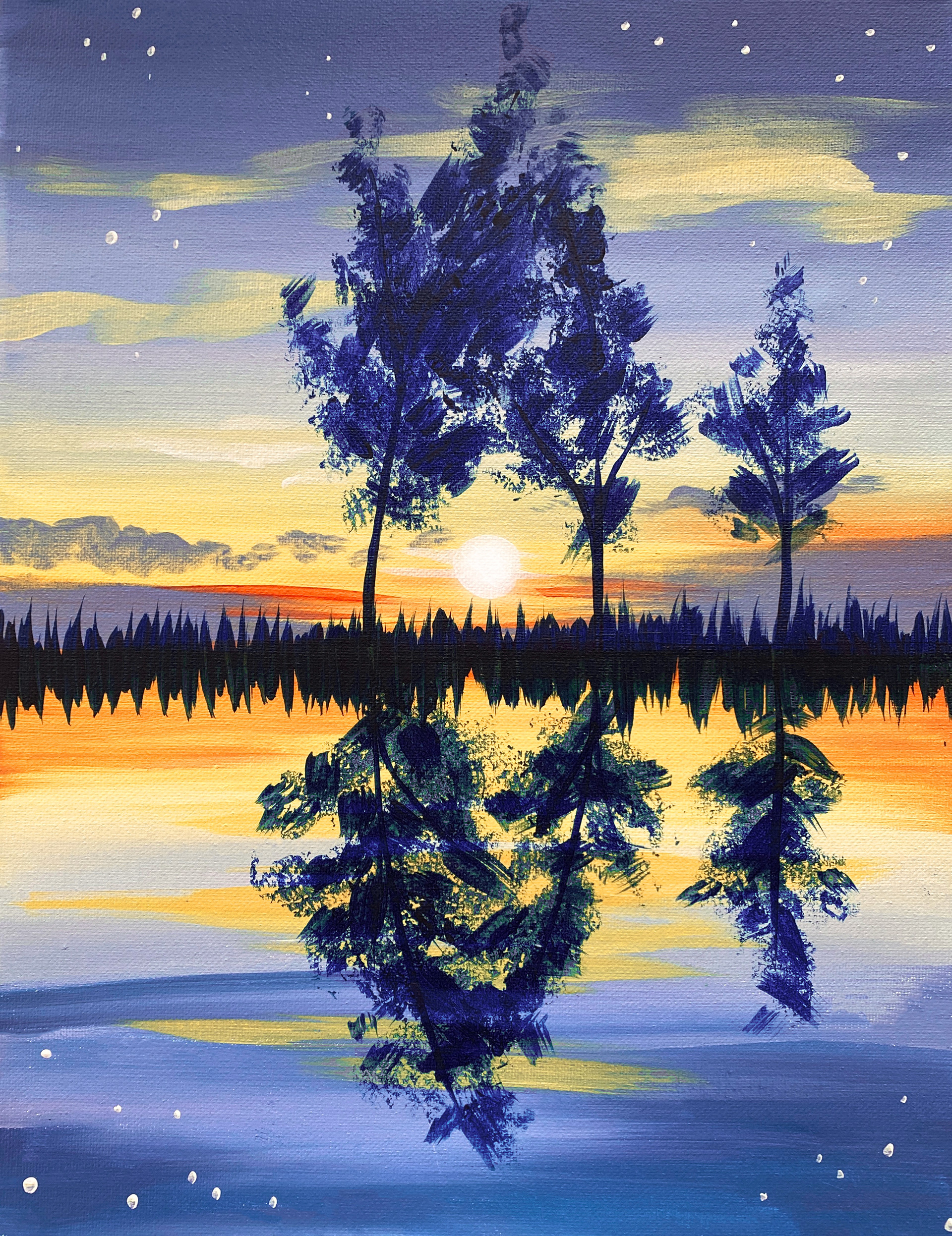 I design to prioritize simple shapes, strokes, and techniques that can transfer to acrylic painting of all skill levels. 300+ artists in the company must be able to teach the painting I design to customers in 90-120 minutes, all while creating a memorable experience.