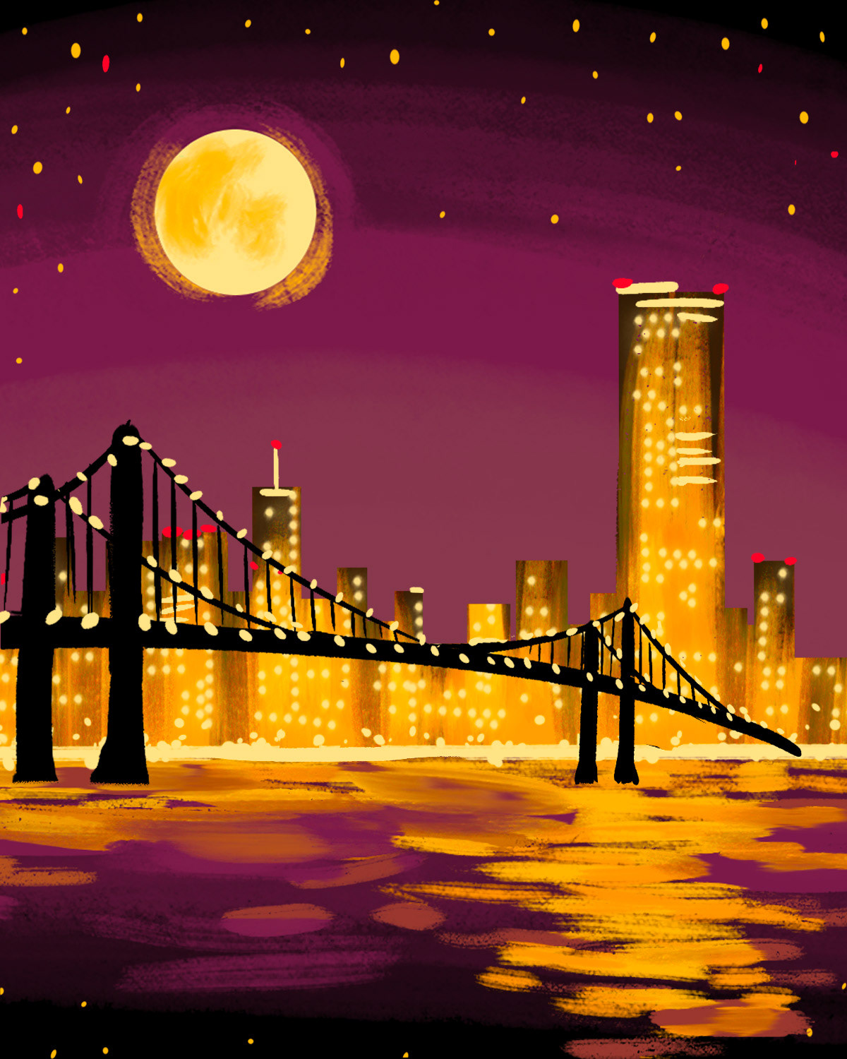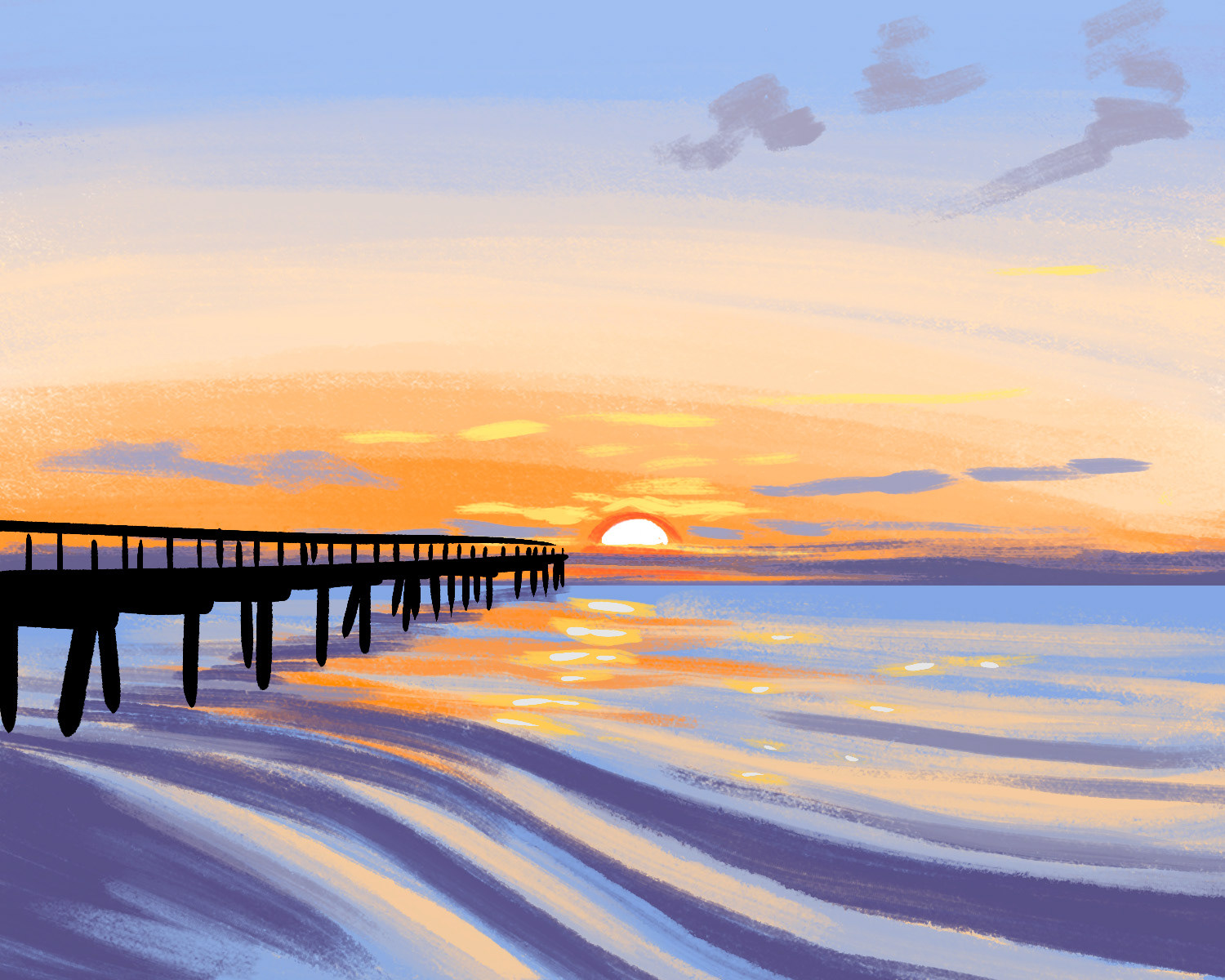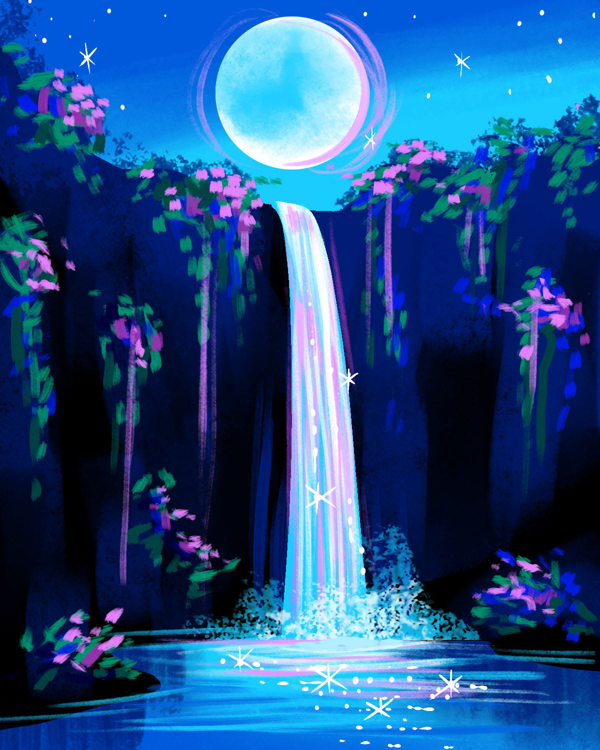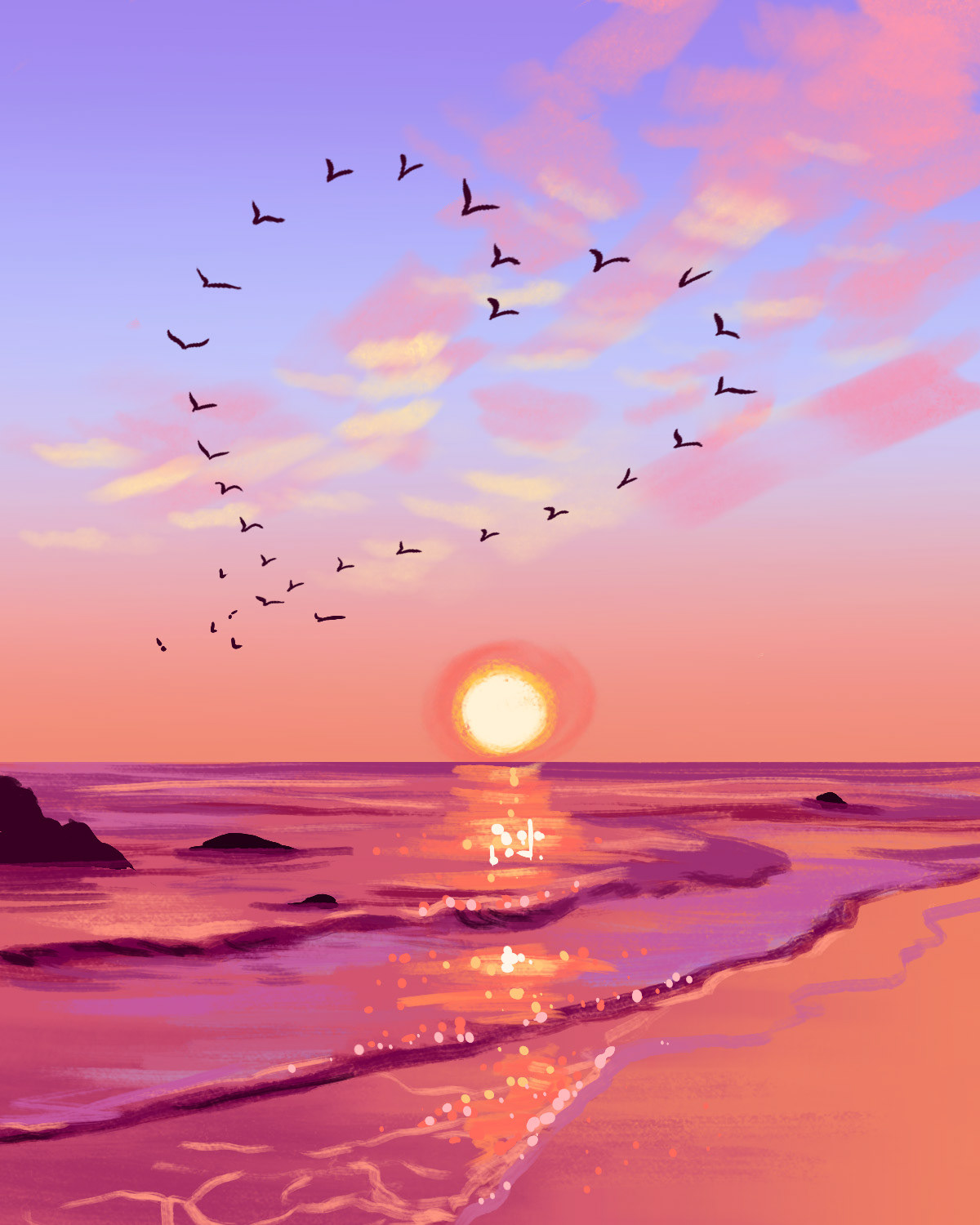 I design to prioritize simple shapes, strokes, and techniques that can transfer to acrylic painting of all skill levels. 300+ artists in the company must be able to teach the painting I design to customers in 90-120 minutes, all while creating a memorable experience.