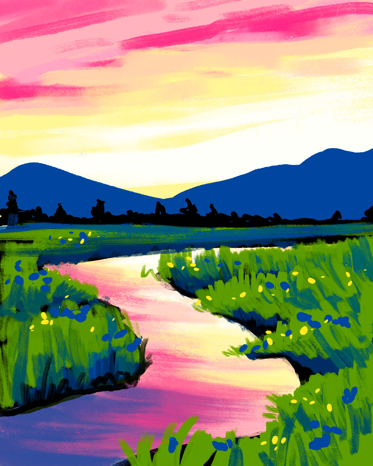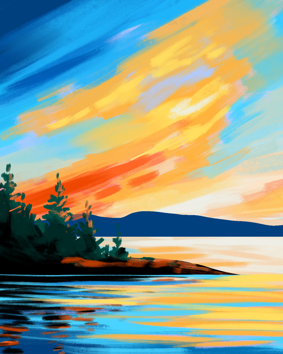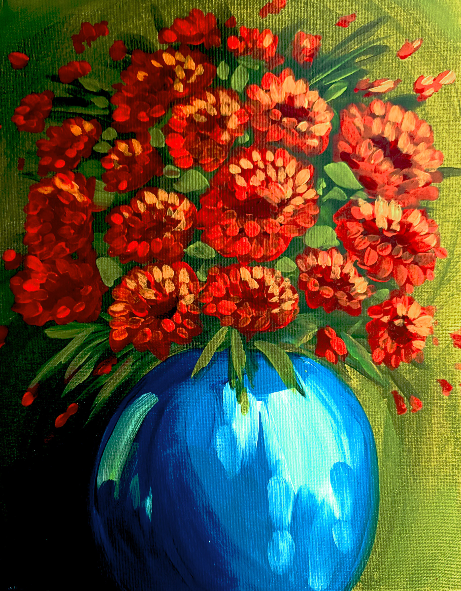 Introducing digital painting into our calendar pipeline, I design 20-30 new paintings every month. I then execute the painting in acrylic, which is used on the calendar for all studios. I plan the monthly calendar for all 25 studios, each offering 2-8 sessions in a day. I consider painting sales data, local demos, studio teams, color schemes, subject matter, special events, local marketing, and exciting alternative designs to increase our following.